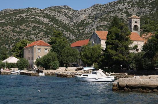 Ein Relikt des Kalten Kriegs zwischen den Seemächten Venedig und Ragusa ist dieses im 15.Jh. errichtete Kloster auf einer Anhöhe über dem Ort. Von hier aus belauerten Spione Ragusas, was sich gegenüber auf dem venezianischen Korčula abspielte. Ein stimmungsvoller Kreuzgang, das Renaissancerelief Maria mit dem Kinde des aus Šibenik stammenden Bildhauers Nikola Firentinac und der beschauliche Friedhof mit Kapitänsgräbern lohnen den Besuch.