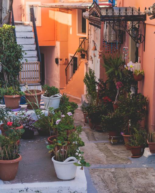 Das alles beherrschende Massiv des 906 m hohen Pantokrátoras und zahlreiche Steilufer prägen diesen Inselteil. Kleine Buchten tief unterhalb der Inselrundstraße säumen die Westküste. Entlang der Nordküste zieht sich ein 6 km langer Strand von Róda bis über Acharávi hinaus. Und im Westen badet ihr an schmalen Stränden unter hohen Steilwänden oder liegt an der sichelartigen Halbkreisbucht von Ágios Geórgios. Die Dörfer in den uralten Olivenwäldern besitzen noch viel alte Bausubstanz, in denen man sich in vergangene Zeiten gebeamt fühlt – und ein paar historische Schmankerl sind auch noch ins bunte Erlebnismosaik eingepasst.