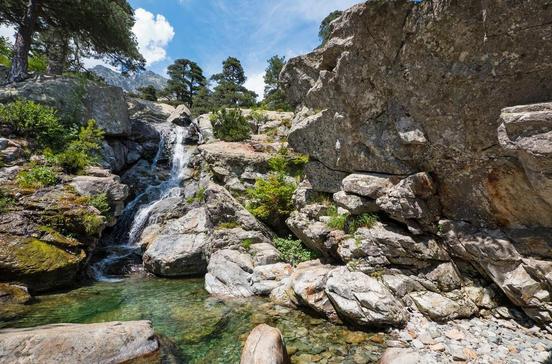 Der schönste Wanderweg am Col de Vizzavona (1161 m, 35 km südlich von Corte) beginnt im Weiler La Foce, nördlich des Passes. Er führt in etwa einer halben Stunde zu den beeindruckenden Wasserfällen, wo der Gebirgsbach Agnone tosend über viele steile Stufen springt. Wer mag, kann diese Tour mit einem weiteren Highlight verbinden, der Fahrt mit der Schmalspurbahn „Micheline“, die von Corte nach Vizzavona gemächlich durch die Bergwelt schnauft
