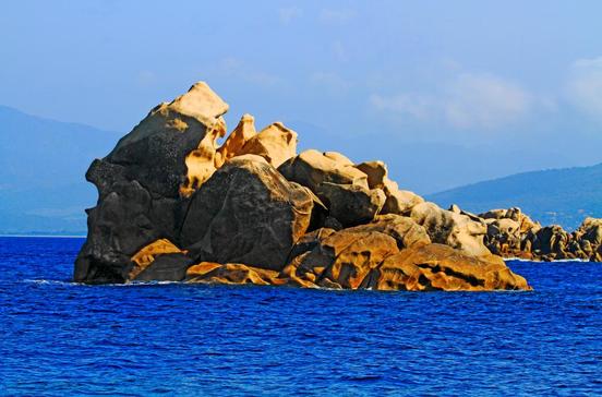 Von Bonifacio nach Westen führt die N 196 und wartet mit zwei besonderen Naturerscheinungen auf. Nach ca. 20 km Fahrt ragt nördlich der Straße der weithin sichtbare, 300 t schwere Granit-Wackelstein L’Uomo di Cagna aus dem Gebirgskamm (1217 m). Er diente bereits in der Antike als Seezeichen. Nach weiteren 10 km, kurz bevor die Straße sich gen Norden wendet, liegt ein steinerner Löwe über einer türkisfarbenen Bucht mit herrlichem Strand: der Rocher du Lion am Capu di Roccapina. Versäume es nicht, den leichten, schattigen Weg vom Strand aus aufzusteigen, zur „Brust“ des Löwen zu gehen und danach weiter zum Genuesenturm – tolle Sicht von der Anhöhe. Rechter Hand der Strand von Erbaju, der wegen starker Strömungen nicht empfehlenswert ist. Links eine Landspitze, zu der Wege hinunterführen.