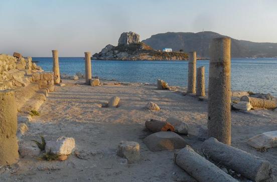 Die Halbinsel im Westen ist der urwüchsigste Teil von Kos. Auf dem langen Sandstrand erheben sich idyllisch die frei zugänglichen Säulen der kleinen frühchristlichen Basilika Ágios Stéfanos. Spärliche Reste eines antiken Theaters liegen westlich des großen Dorfs Kéfalos. 49 km von Kos-Stadt