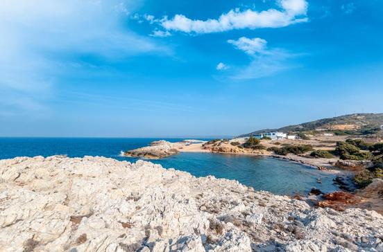 Für einen super Strand ist dir kein Weg zu weit und zu mühsam? Nur per Jeep, Motorrad oder zu Fuß kommt man vom Kloster Ágios Ioánnis Pródromos aus zum Kavo Paradiso Beach hinunter: viel feiner Sand, sehr wenig Leute, nur im Hochsommer ein paar Sonnenschirme und Liegen. Kein Haus weit und breit, nur Felskulisse. Bikini und Badehose braucht man da nicht.