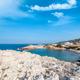 Zur kleinen, abgeschiedenen Bucht zwischen den beiden kilometerlangen Stränden bei Kéfalos führt eine steile, nichtasphaltierte Straße hinunter. Der Strand ist nur ca. 100 m lang, über Felsen kletternd erreicht man weitere winzige Sandflecken, an denen auch FKK möglich ist. Von allen Stränden um Kéfalos ist dieser für Schnorchler der attraktivste. Eine einfache Taverne sorgt für Speis und Trank. Die Zufahrt ist von der 600 m entfernten Hauptstraße aus beschildert.