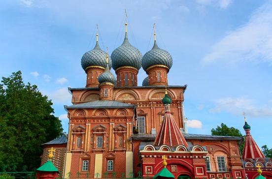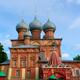 Zum Zeitpunkt des Baus (1651) noch von Birken umgeben, liegt die Kirche heute mitten in der Stadt. Prächtig sind die fünf Zwiebeltürme über dem Haupthaus, verhalten die Türmchen auf Vor- und Nebengebäuden. Der Ziegelbau ist reich mit Ornamenten geschmückt.