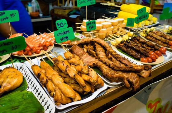 Allabendlich erwacht der Nachtmarkt am Fluss zum Leben. Klassiker wie fried rice und Frühlingsrolle gibt es schon ab 30 Baht. Direkt vor Ort wird gebrutzelt, es zischt, und manchmal lodert gar eine riesige Flamme auf und erhellt den Platz. Und es riecht so lecker. Frischen Fisch kannst du dir auch grillen lassen: Dazu wählst du dein Lieblingsexemplar direkt an der Auslage aus.
