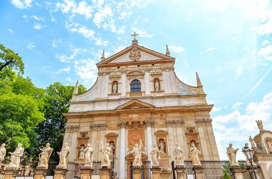 Die Erde dreht sich – und in dieser Kirche kann man das Phänomen hautnah erleben. Von der fantastischen Kuppeldecke wird nämlich ein Foucaultsches Pendel herabgelassen, durch dessen Schwingungen die Erdrotation nachgewiesen wird. Das barocke, erfrischend luftige Gotteshaus von anno 1597 ist eine exakte Kopie der römischen Jesuitenkirche Il Gesù – manche behaupten, dass bei der Krakauer Version die Proportionen sogar noch besser passen. Vergiss nicht in die Krypta hinabzusteigen: kein dunkles Loch, sondern helle, liebevoll restaurierte Gewölbe, die die letzte Ruhestätte berühmter Polen sind. In der Kirche werden im Sommer oft Konzerte gegeben, die auf Plakaten am Eingang angekündigt werden. Da es dann auch innen kalt ist, solltest du beim Konzertbesuch immer einen Pullover mitnehmen.