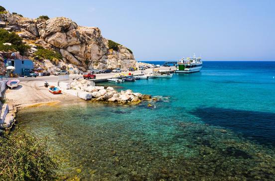 Der kleine Fischerhafen liegt südwestlich der antiken Stadt Kámiros und ist in erster Linie für alle diejenigen interessant, die einen Bootsausflug zur Nachbarinsel Chálki unternehmen möchten. Die Fischtavernen am kleinen Hafen, die täglich mit frischem Fang beliefert werden, schätzen auch die Einheimischen. In der Felswand dahinter ist die unvollendete Fassade eines Felsengrabs, das aus hellenistischer Zeit stammt, zu erkennen.