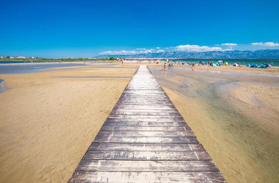Die flach abfallenden Feinkiesund Sandstrände an der Lagune von Nin und Zaton sind ideal für Kleinkinder. Sand schaufeln, Burgen bauen und im seichten Wasser planschen können sie sonst nur an wenigen Stellen in Dalmatien. Nur die auf einem Hügel erbaute, altkroatische Kirche Sv. Nikolas (11.Jh.) erinnert an die frühere Bedeutung Zatons, das Nins Ausfuhrhafen war.