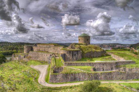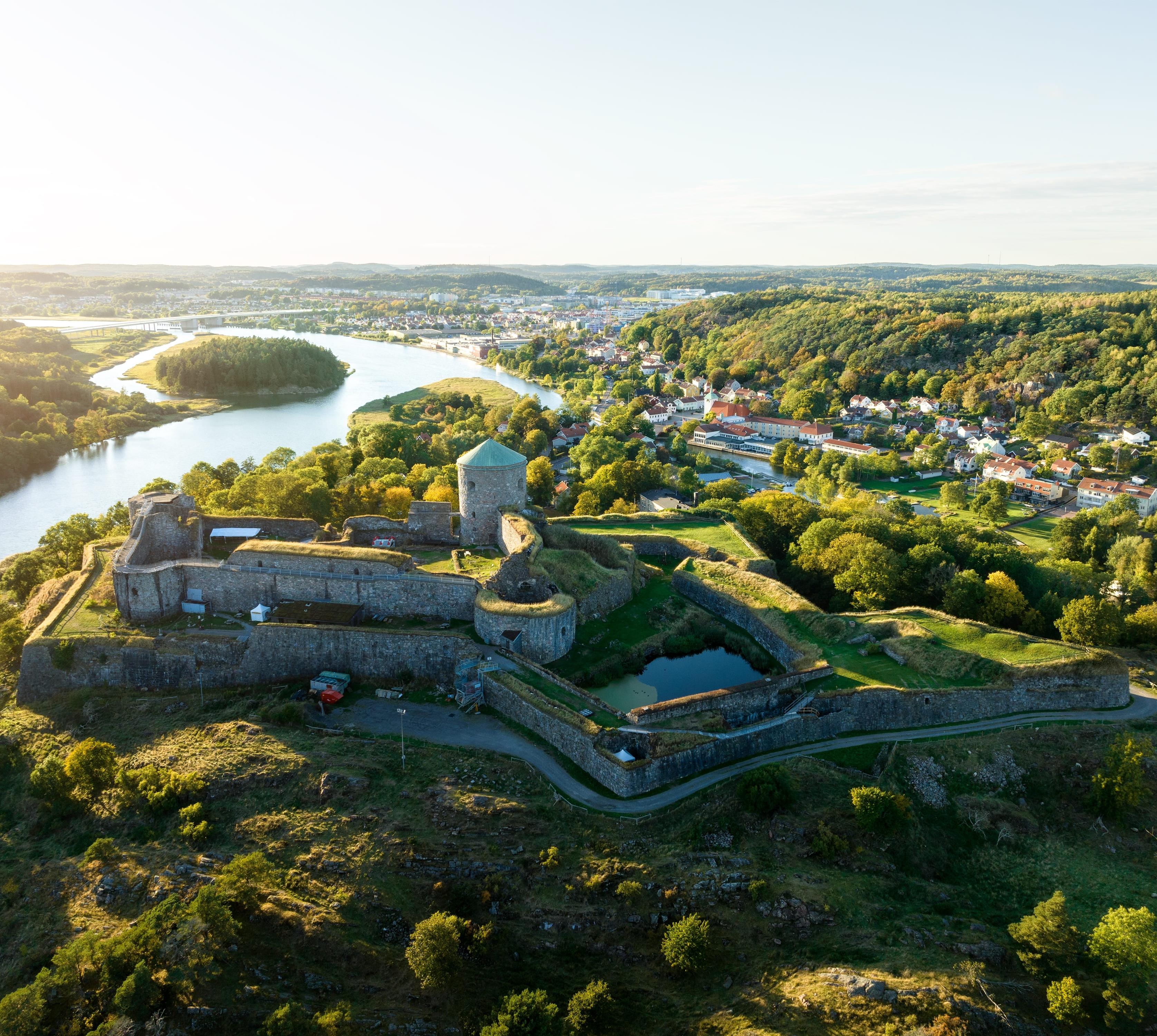 Der Zusammenfluss von Nordre und Göta Älv markierte bis zum Friede von Roskilde 1658 die Grenze zwischen Schweden und Norwegen. Bis dahin war die 1308 von den Norwegern errichtete Burg stets umkämpft, wurde aber nie eingenommen. Turm und Haupttor des im 17.Jh. erweiterten Baus sind rekonstruiert.