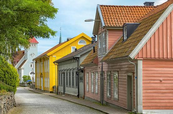 Helle Holzvillen und bunte Segelboote prägen das Bild dieser schönen, autofreien Insel. Eine phantastische Aussicht aufs Meer bietet sich von der Festung Carlsten.