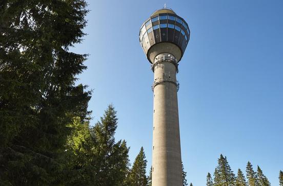 Auf dem Puijo-Hügel steht der 1963 gebaute und 75 m hohe Aussichtsturm, sodass man sich hier mehr als 200 m über dem See befindet. Von dem sich drehenden Panoramarestaurant schweift der Blick über eine nahezu endlos scheinende Landschaft. Dabei wird die leckere Küche fast zur Nebensache.