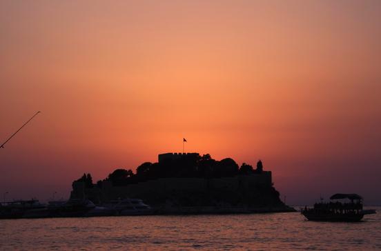 Über einen Damm kann man trockenen Fußes zu dieser hinüberlaufen. Dort ist die kleine genuesische Festung aus dem 14.Jh. zu bewundern, deren Turm später als Munitionsdepot genutzt wurde. Auf der Halbinsel gibt es eine Reihe schöner Teehäuser, die zu einem geruhsamen Nachmittag einladen.