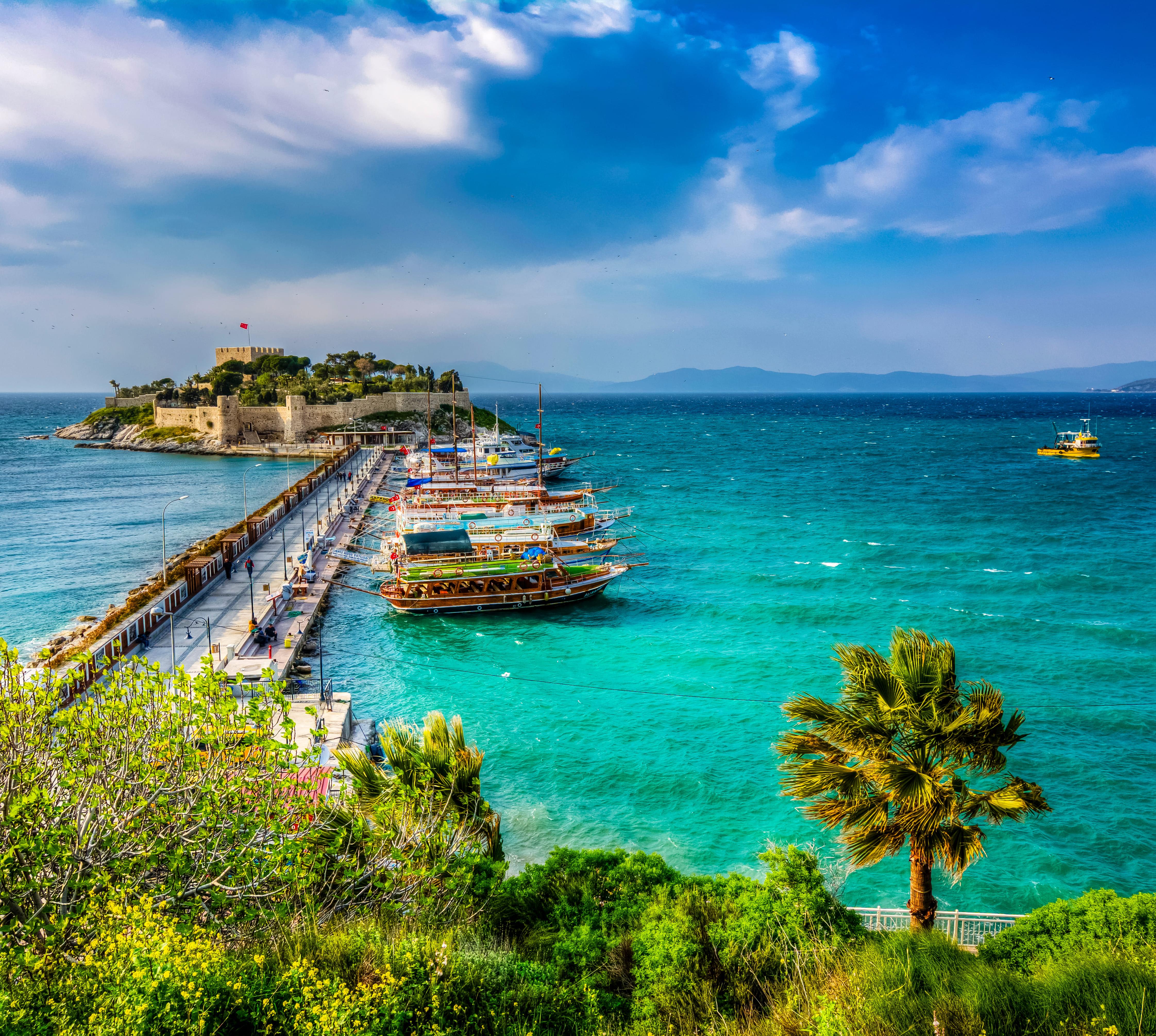 Kuşadası (125 000 Ew.), einst ein kleines Fischerdorf, ist heute einer der größten und touristischsten Orte an der Ägäis. Am Kreuzfahrthafen liegen die Riesenschiffe, die im Sommer täglich Tausende zu den größten antiken Attraktionen der Küste, Ephesos, Milet und Didyma, bringen.