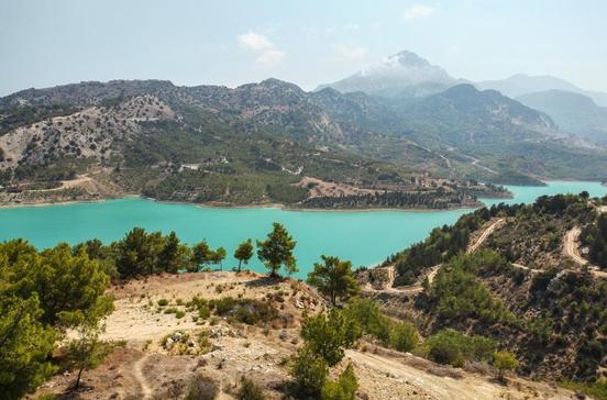 Ein gigantischer Stausee mit der schönsten Natur drum herum. Toll sind aber nicht nur die Berge, die Orchideen und Tulpen, die hier im Frühjahr wachsen. Das Wasser im Damm stammt aus der Türkei und wird über Unterwasserpipelines 107 km weit gepumpt. Eine technische Meisterleistung und eine Erleichterung für das Land, das im Sommer nie genug Wasser hat.