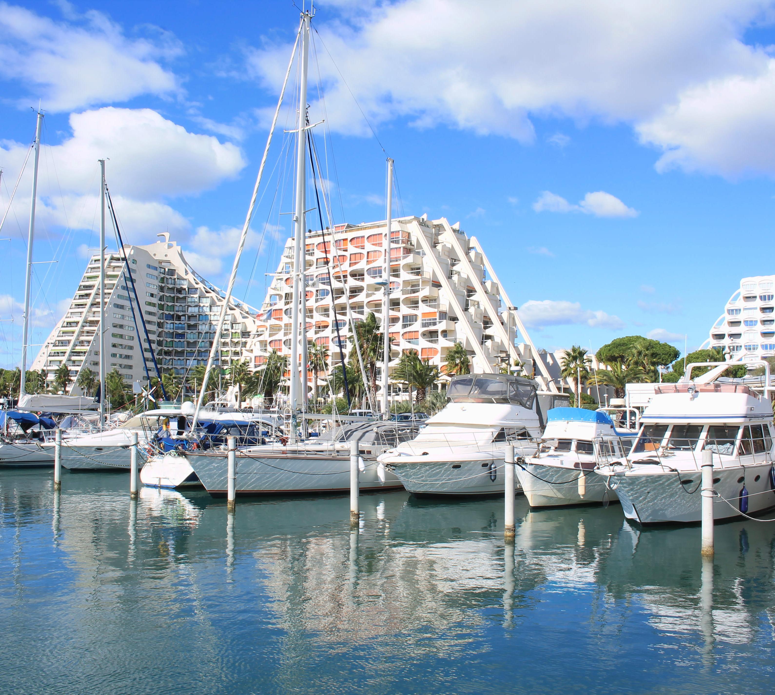 Bereits zwei Jahre später wurde sie eröffnet: als architektonischer Spielplatz aus Pyramiden inmitten von Parks und Gärten, Wegen abseits vom Verkehr, Yachthafen, Wassersporteinrichtungen aller Art, Golf- und Tennisplatz, Thalassotherapie, Einkaufszentrum und allen anderen Einrichtungen, die den Urlaub perfekt machen. 100 000 Urlaubern bietet sie Unterkunft. Zwar dominiert hier die Hochhausarchitektur, dahinter liegen aber auch Villen im provenzalischen Stil mit Innenhöfen. Unzählige Rad- und Spazierwege durchziehen den Ort, ein 12 km langer Radweg führt nach Lunel. Wer will, kann das Auto den ganzen Urlaub über stehen lassen.