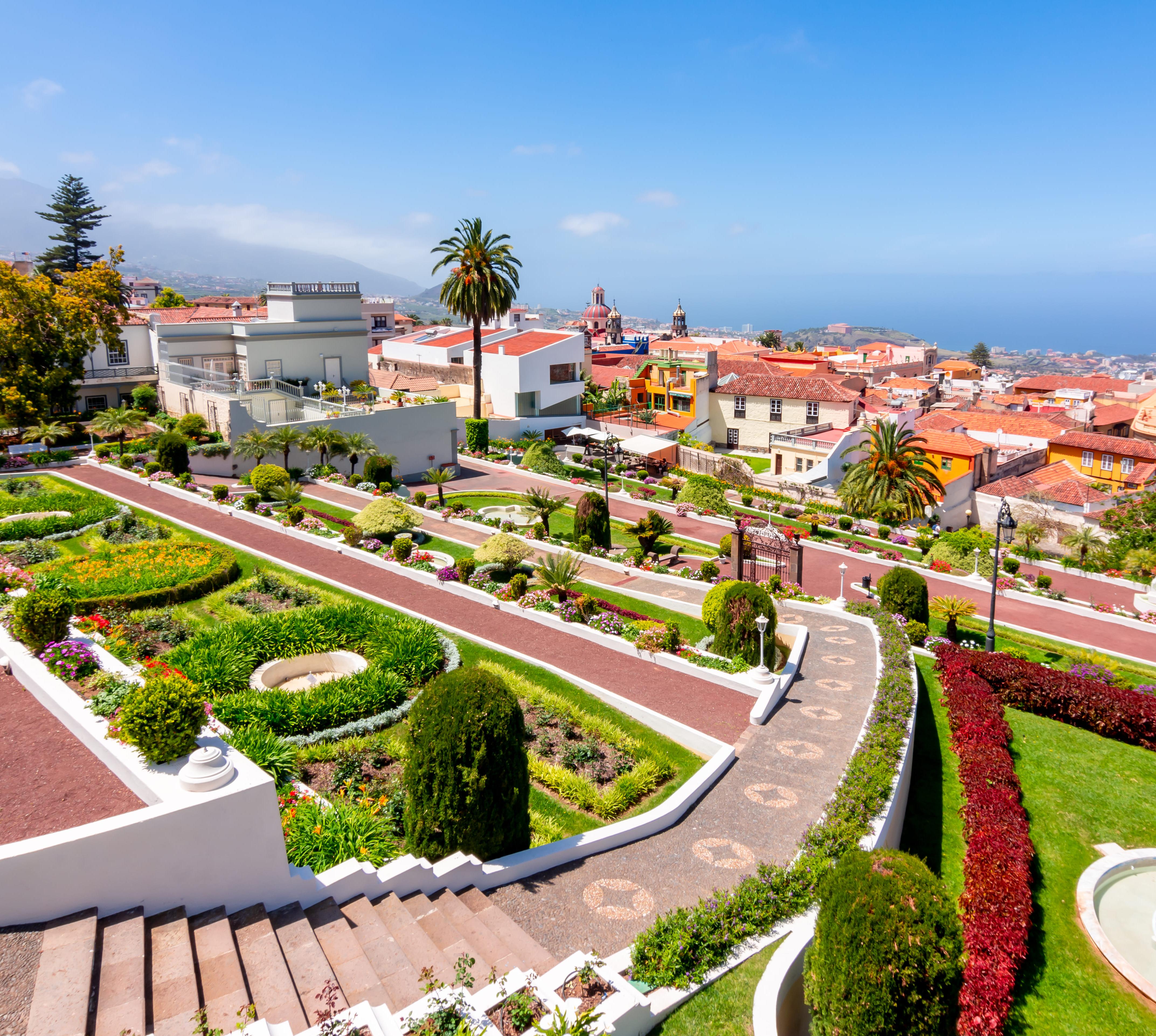 Hinter dem Rathaus liegt der rund 4000 m2 große Botanische Garten - 1788 auf Initiative des Grafen Villanueva del Prado eingerichtet. In der gepflegten Anlage sind u.a. australische Koniferen, indische Kastanien, leuchtende Flammenbäume und ein schöner Drachenbaum zu sehen.
