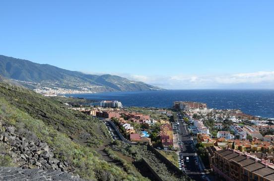Weite Blicke über die Hänge von Las Breñas, zum Meer und zur Cumbre sowie nach Santa Cruz, besonders auf den Hafen, auch bei Nacht toll!