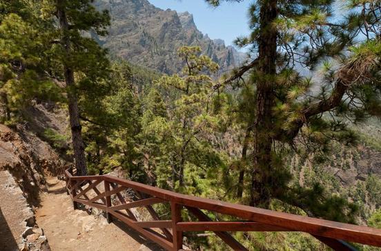 Von Los Llanos fährst du Richtung Berge und folgst dem Wegweiser zur „Caldera“. Nach gut 4 km stößt du auf dem Grund des Barranco de las Angustias auf einen Parkplatz. Wer die klassische Caldera-Wanderrunde (Achtung: nur für trittsichere, konditionsstarke Wanderer geeignet!) unternehmen will, steigt hier ins Taxi. Es bringt Wanderer 8 km weit zum Ende der kurvenreichen Straße in Los Brecitos (mit Aussichtspunkt), wo die Tour startet.