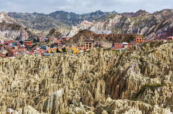 Gegründet 1548 von dem Spanier Alonso de Mendoza, liegt die heute 1,1 Mio. Einwohner zählende Metropole zum größten Teil geschützt vor den eisigen Hochlandwinden im tiefen Cañon des Río Choqueyapu – den eisbedeckten lllimani (6439 m) immer im Blick. Wobei die bessere Gesellschaft in den tiefer gelegenen Vierteln (barrios) San Miguel, Calacoto oder Zona Sur wohnt. Die Armen müssen mit den kälteren, weil höher gelegenen Stadtteilen vorlieb nehmen, z. B. El Alto (4061 m). Im Zentrum, nahe der Plaza San Francisco, treffen sich die verschiedenen Bevölkerungsgruppen wieder: Rund um die Geschäftshäuser der Weißen und Mestizen wogt ein bunter (Souvenir-)Markt der indígenas.