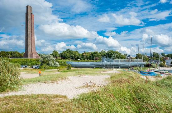 Die Plattform des 72 m hohen Ehrenmals erreicht man über 341 Stufen oder mit dem Fahrstuhl. Am Fuße des Denkmals liegt das Museums-U-Boot "U 995". Nach todbringenden Einsätzen während des Zweiten Weltkrieges kann man hier heute die beengende Atmosphäre eines U-Bootes nachfühlen.