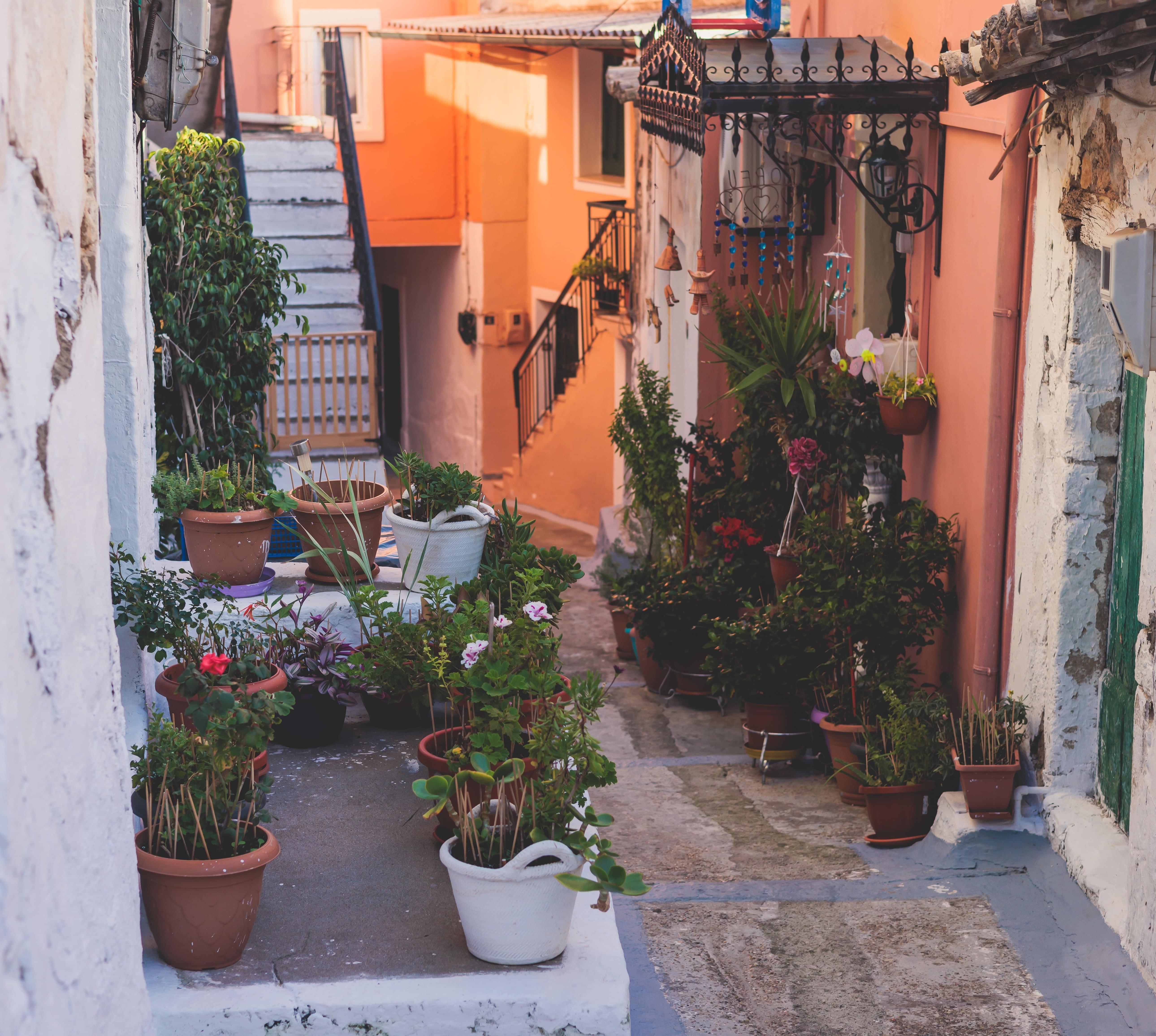 Makrádes ist ein großes Bergdorf mit vielen alten Häusern und schmalen Gassen. Nirgends sonst auf Korfu haben sich mehr Einwohner auf den Verkauf von Kräutern und heimischem Landwein spezialisiert als hier. Die heftige Konkurrenz zwingt sie, jeden vorüberfahrenden Wagen durch heftiges Gestikulieren zum Anhalten zu bringen.