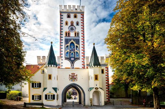 Was für ein Vorbau! Das gotische Stadttor ist Teil des noch fast vollständig erhaltenen Mauerrings um die Altstadt. Mit seinen wehrhaften Zinnen, der Bemalung und dem begehbaren Turm zeigt es, wie wohlhabend Landsberg früher war.