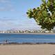 2 km lang erstreckt sich westlich des Zentrums dieser helle Sandstrand, dahinter liegt die gleichnamige Vorstadt in direkter Nachbarschaft zum Flughafen.