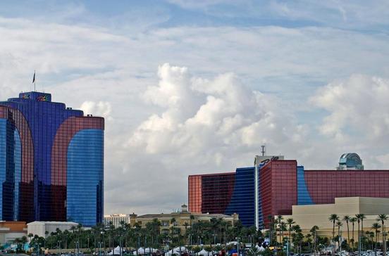 Das brasilianische Rio liegt westlich des Strip. Die beiden farbigen Glastürme sind besonders nachts attraktiv. Drinnen wird das ganze Jahr über Karneval gefeiert. Die "Masquerade Show in the Sky" macht v.a. wegen ihrer ungewöhnlichen Bühne von sich reden: Von der Decke hängende Karnevalswagen schweben durch die Kasinolüfte, während die Besatzung zu heißen Rhythmen tanzt. Besucher sind eingeladen, sich selbst zu kostümieren und mitzutanzen. Man sollte aber nicht glauben, dass man dafür bezahlt wird, im Gegenteil: Der Ehrenplatz auf dem Wagen kostet. Ansonsten ist die Show frei und am besten von der zweiten Etage des "Masquerade Village" aus zu sehen.