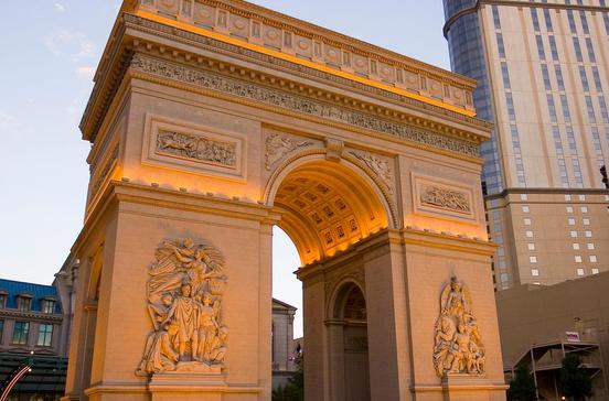 Von innen und außen eine Puppenhausversion lädt das Paris Las Vegas ein zur Besichtigung des detailgetreu nachgebauten Arc de Triomphe.