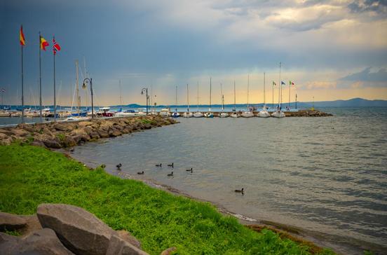 Von hübschen mittelalterlichen Städtchen, Weinbergen und Olivenhainen umgeben, ist Italiens größter Kratersee vor allem unter deutschen Campern beliebt. Der Hauptort Bolsena (4000 Ew.) war 1263 Schauplatz des sogenannten Eucharistischen Wunders, das Anlass gab zur Einführung des Fronleichnamsfests (alljährlich wird es mit prächtiger Blumenprozession gefeiert) und zum Bau einer der schönsten Kirchen Italiens, des Doms im nahen Orvieto in Umbrien. Eine spektakuläre Erosionslandschaft tut sich im Nordosten des Sees bei Civita di Bagnoregio auf, einem auf einem Tufffelsen vom Abstürzen bedrohten Dorf mit engen Gassen, mittelalterlicher Atmosphäre und atemraubenden Ausblicken. Im malerisch gelegenen Bagnoregio kannst du im Restaurant Romantica Pucci eine ausgezeichnete Trüffel-carbonara essen.