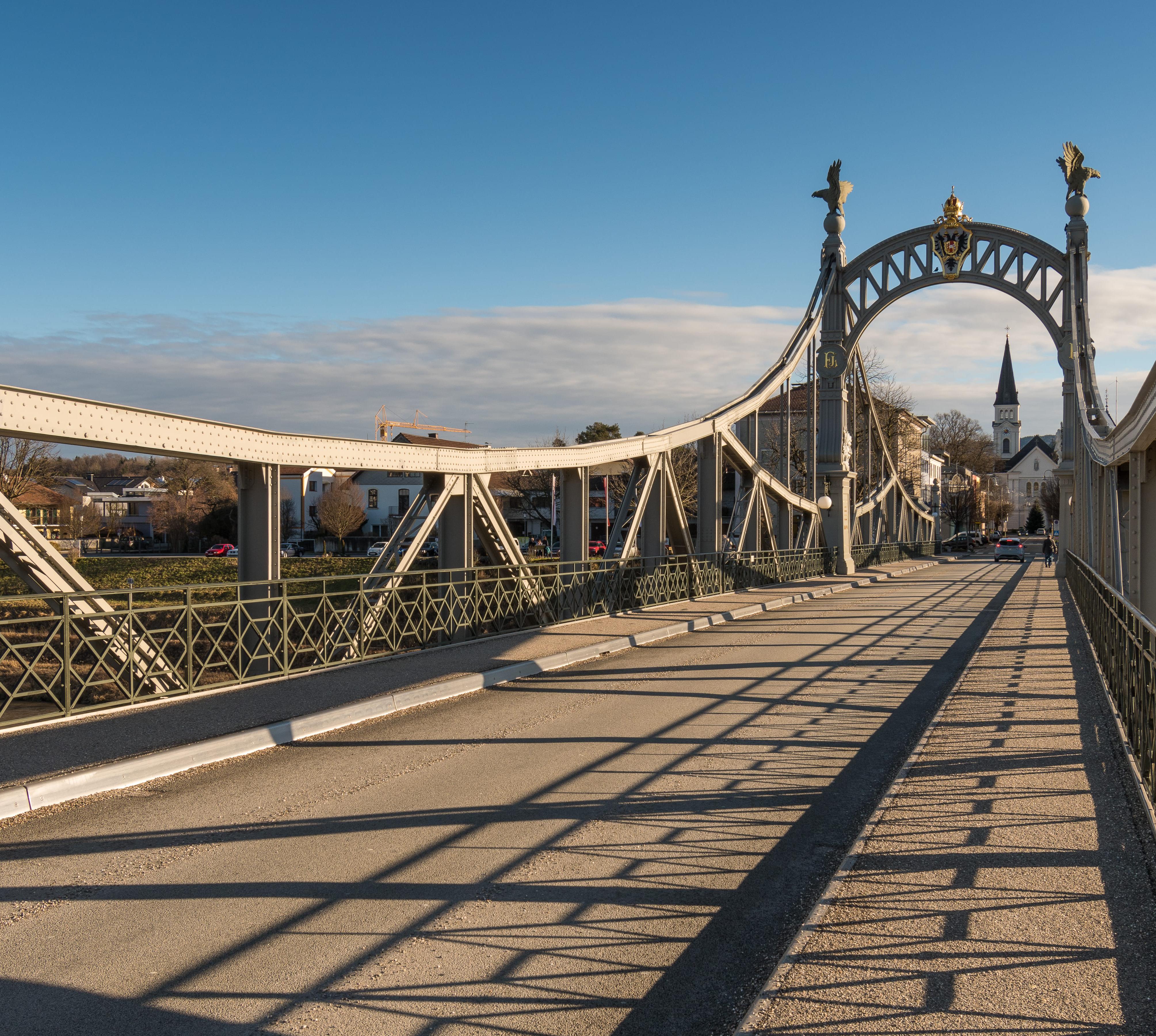 Bis heute ist Laufen (7500 Ew.) eine geteilte Stadt: Nach dem Wiener Kongress (1814–15), auf dem die Salzach zum Grenzfluss erklärt wurde, ging der Ort an Bayern, die Vorstädte Altach und Oberndorf blieben bei Salzburg. Die Grenze überquerst du auf der adlergeschmückten Salzachbrücke.