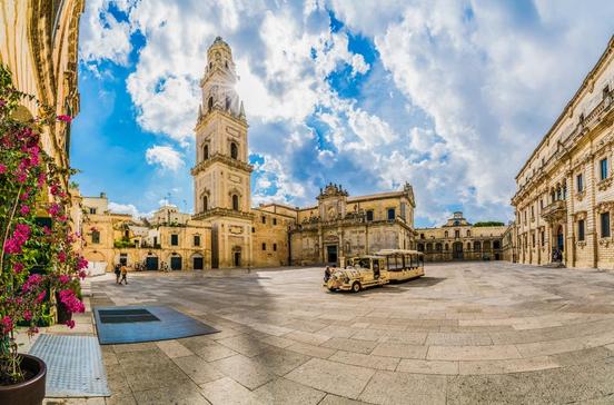 In der lebendigen Universitätsstadt feiert die barocke Architektur ein Fest. Zwischen dem 16.und 18.Jh. entstanden zahlreiche sehenswerte Bauten im Stile des "Lecceser Barocks". Dafür geben der Dom und die Basilika Santa Croce mit verschwenderisch gestalteter Fassade eindrucksvolle Beispiele.