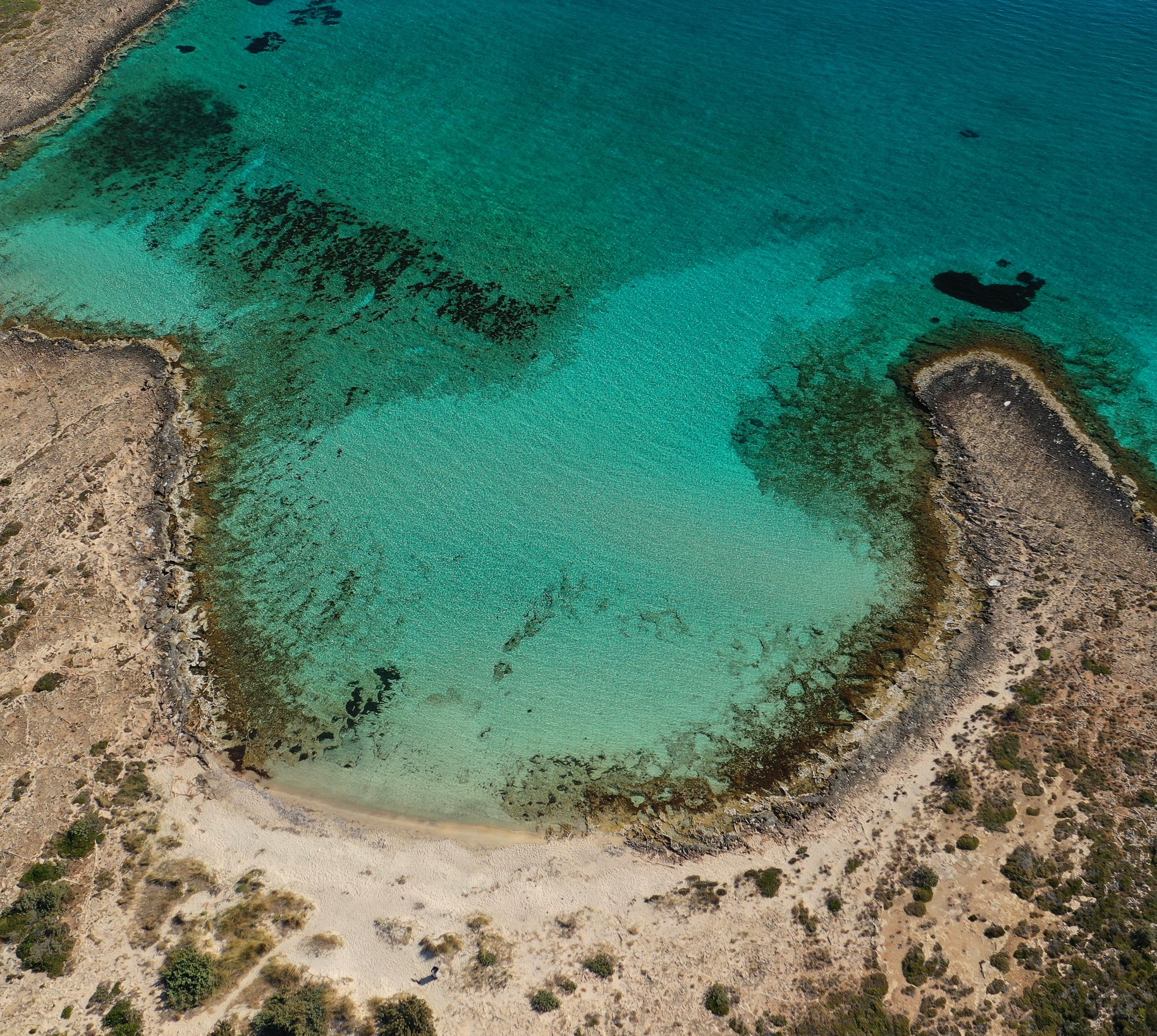 100 m langer, 15 m breiter Kieselsteinstrand ohne Taverne, wenig besucht, gut zum Schnorcheln.