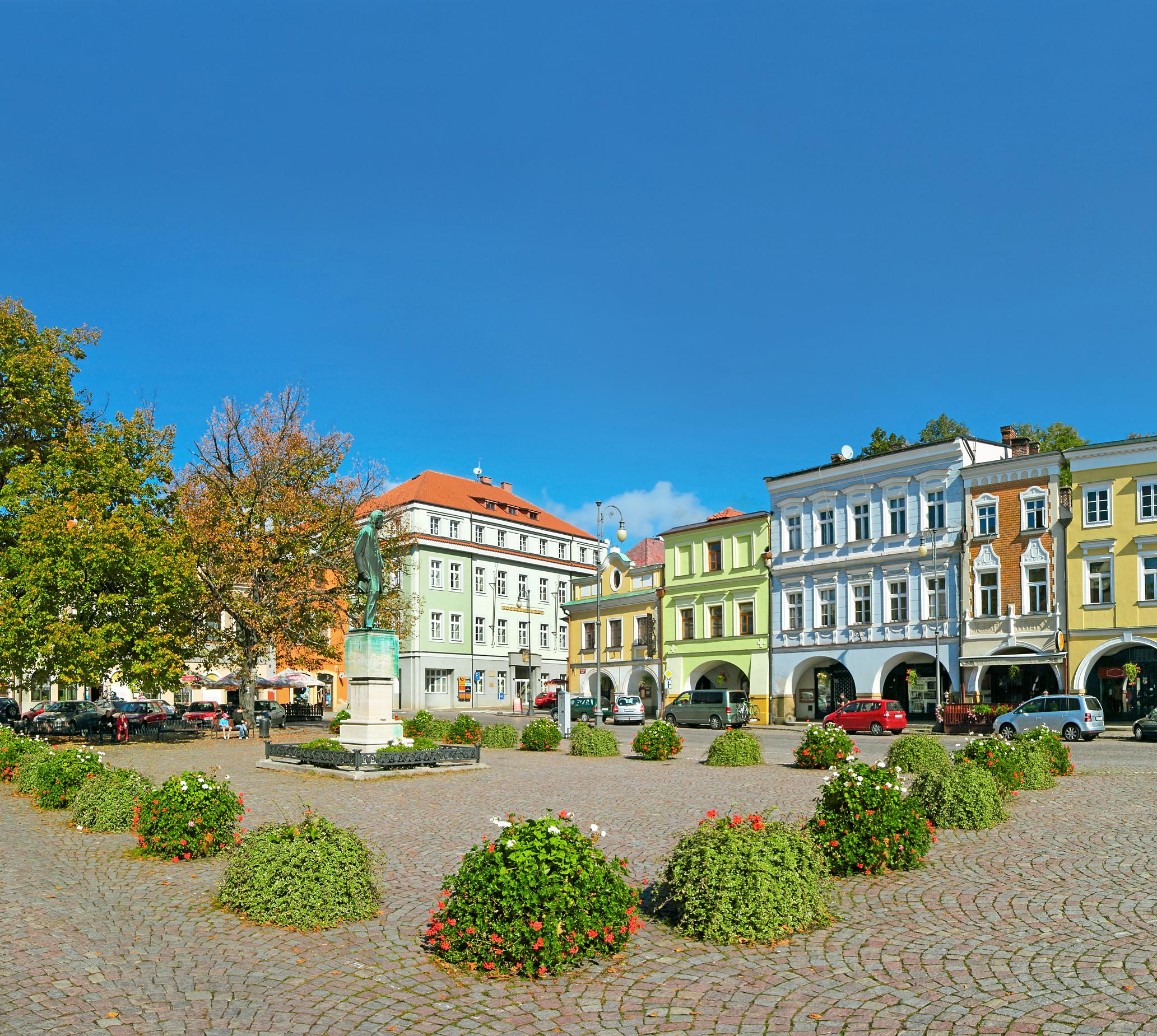 Natürlich ist der Hauptplatz nach Smetana benannt, das Arrangement der Häuser ringsum mit ihren Arkadengängen macht dem Komponisten alle Ehre. Jede Fassade ist ein Kunstwerk für sich.