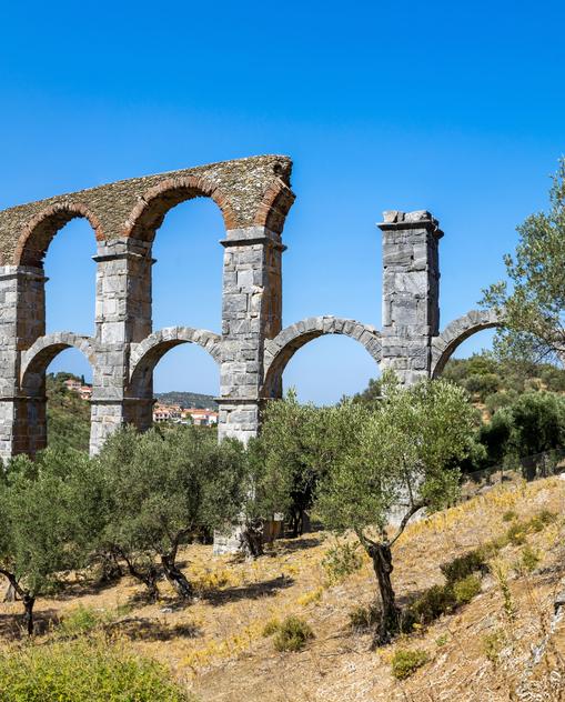 Interessant ist dieses Dorf, weil sich hier in einem Olivenhain westlich des Dorfs das noch gut erhaltene römische Aquädukt befindet, das der Wasserversorgung der Hauptstadt der Insel Lesbos diente.