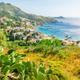 Das Städtchen zieht sich einen steil aus der Küstenebene emporragenden Berg hinauf, der von einer Burg aus dem 14.Jh. gekrönt wird. Zum Meer hin bilden die Häuser des Orts eine geschlossene Front. Diese Fassade stellte in früheren Zeiten die Stadtmauer dar. In der Ebene stehen zahllose Hotels und Pensionen.