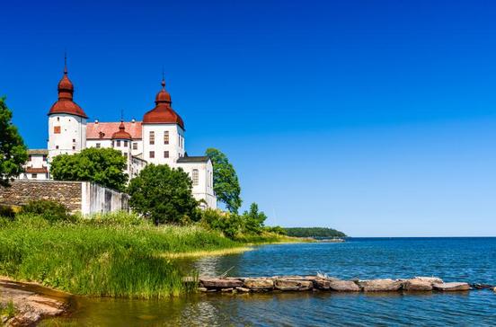 Auf einer Halbinsel im Vänern steht das traumhaft schöne Barockschloss, in dem Ausstellungen und im auch Sommer Konzerte stattfinden.