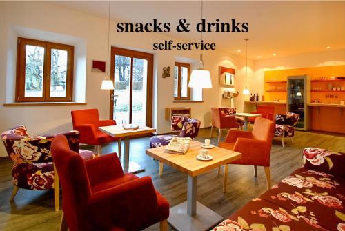 Das Frühstück wird im Restaurant oder im Wintergarten mit Zugang zur Terrasse serviert. Im À-la-carte-Restaurant genießen Sie traditionelle Küche im Speiseraum im Landhausstil oder bei schönem Wetter auf der Terrasse. Die Verpflegung mit Halbpension beinhaltet ein 4-Gänge-Abendessen.