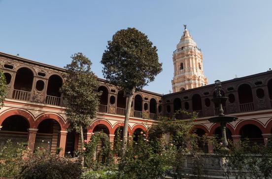Die Kirche wurde 1599 unter dem Dominikaner de Valverde errichtet, der Pizarro bei der Gefangennahme Atahualpas geholfen hatte. Schön sind die Kreuzgänge mit Kacheln aus Sevilla. Unter dem prunkvollen Kapitelsaal des Klosters ruht Isabel Flores de Oliva, die 1671 als Santa Rosa zur ersten Heiligen des Kontinentswurde. Sie soll drei Jahre bis zu ihrem Tod in freiwilliger Askese in einer Zelle gelebt haben.