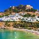 Líndos (800 Ew.) ist die Beauty Queen unter den rhodischen Dörfern. Der Akropolisfels mit einem zarten Tempelchen hinter mächtigen Burgmauern ist die Krone.