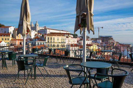 Eine fahrtechnische Herausforderung in Form einer kurzen Rampe bringt Besucher zum hübschen Miradouro de Sao Estévão, einem Aussichtspunkt mit Blick auf die Dächer der Alfama, den Fluss und vielleicht ein Kreuzfahrtschiff im Hafen.