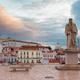 Der Platz wird bewacht vom offiziellen Schutzheilligen Lissabons, São Vicente, in Stein gehauen und mit einer Karavelle im Arm.