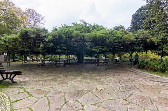 Mitten im lauschigen Stadtpark Princípe Real steht eine grandiose alte Zeder, deren ausladende Baumkrone von einem schmiedeeisernen Spalier getragen wird und die so einen außergewöhnlichen Baldachin bildet. Jeden Samstagvormittag findet im Park ein beliebter Biomarkt statt.