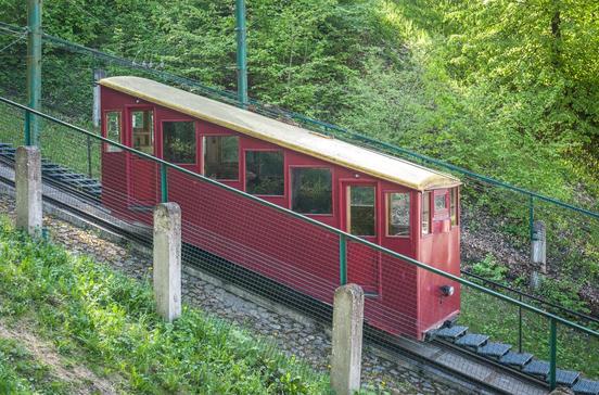 Wirklich witzig sind die 100 Jahre alten Standseilbahnen. Die Aleksotas-Bahn rumpelt in 90 Sekunden ihre 70 m auf und ab, am Ende der großen Vytauto-Brücke. Oben wartet eine Aussichtsplattform mit tollem Blick auf Altstadt und Fluss.