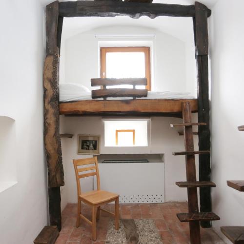 Die Zimmer verfügen über hohe Decken und Wanddekorationen, die dem alten Burginterieur nachempfunden sind. Sie sind in Erdtönen gehalten und mit einem eigenen Bad mit einer Dusche und einem Haartrockner ausgestattet.
