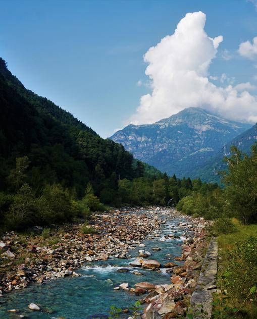 Auf kurvenreichen Straßen gelangt man in Täler, die die Namen ihrer wilden Wasser tragen: Verzasca, Maggia, Bavona. Wanderer schätzen die schattigen Wälder und die sonnigen Flussufer – und natürlich die Tessiner Spezialitäten in einem Grotto.