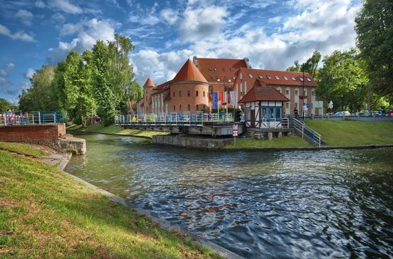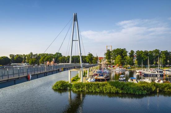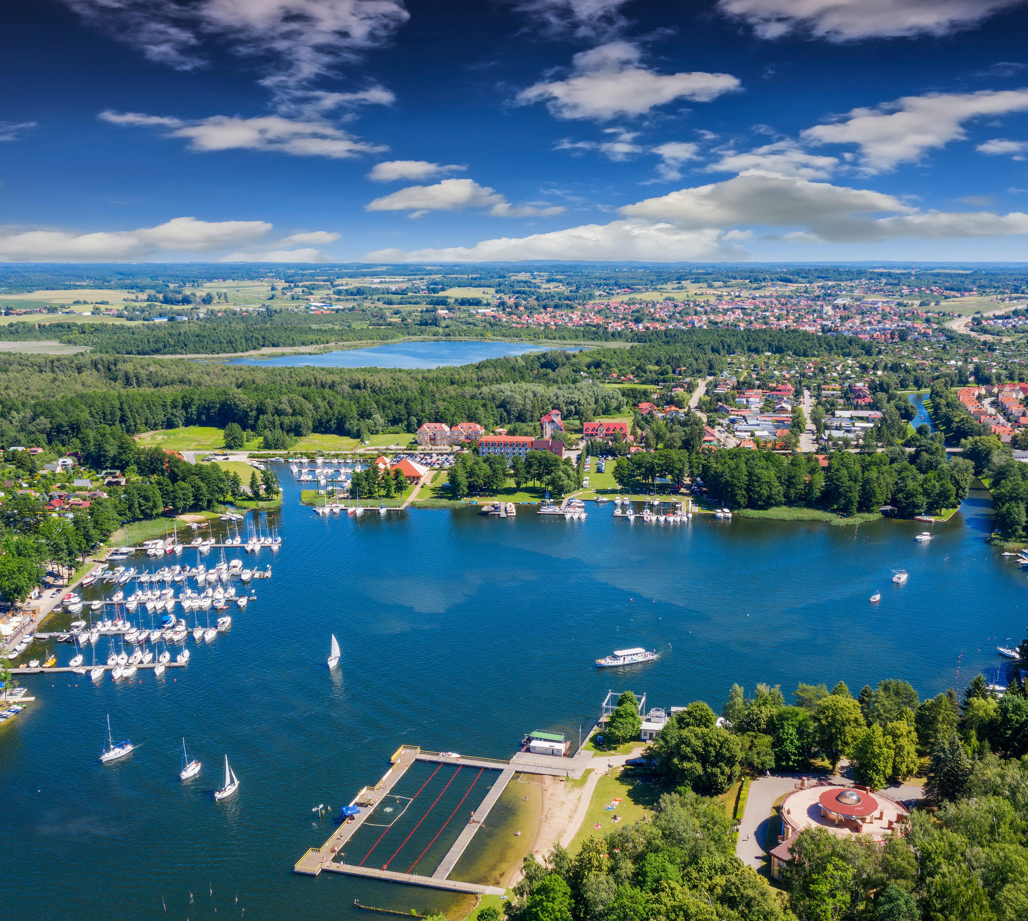 Was Mikołajki kann, kann Giżycko erst recht: richtig toll zwischen mehreren Seen liegen – genauer gesagt zwischen dem Jezioro Kisajno, dem Kissain-See, und dem Jezioro Niegocin, dem Löwentin-See. Während Mikołajki kleiner, übersichtlicher und voller ist, verteilt sich in Giżycko, der mit 29 300 Ew. größten Stadt Masurens, alles ein wenig besser. Und eine Menge weiterer Seen liegen quasi vor der Haustür, zum Beispiel: Popówka Duża und Mała. Die um diese Seen angelegten Wanderwege sind wie gemacht für Spaziergänge und Joggingrunden. Mehr als 20 Marinas bieten rund 1500 Bootsliegeplätze – und weitere sind bereits in Planung. Kein Wunder also, dass Giżycko zu den absoluten Hotspots für Wassersport und Urlaub in Polen zählt.