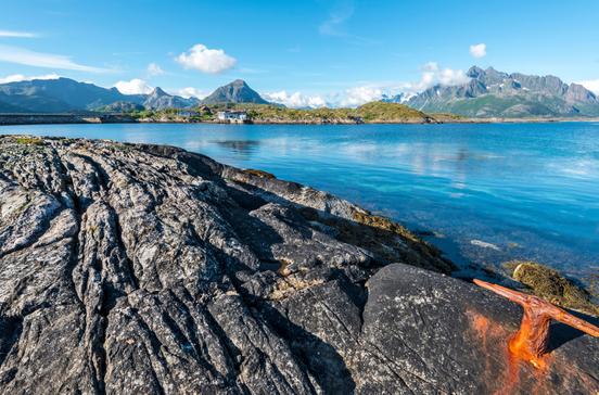 Schon die Anreise ist ein Erlebnis. Egal, ob man mit der Fähre oder dem Flugzeug vom Festland hinüberkommt: Die mächtige Lofotwand fällt ins Auge - eine unendliche Reihe von zinnenartigen Gipfeln, die sich aus dem Vestfjord erheben. Dazwischen haben zahlreiche Fischerdörfer ihren Platz gefunden, dahinter verbergen sich Ackerland, Kleinstädte und historische Fundgruben. Auf der Westseite des riesigen Vestfjords zieht sich auf gut 150 km Länge die Inselgruppe der Lofoten nach Norden. Vom Festland fährt die Autofähre von Bodø nach Moskenes oder von Skutvik nach Svolvær. Mit dem Katamaran gelangt man von Bodø nach Svolvær. Der "Landweg" über viele Brücken und eine kurze Fähre ist die Europastraße 10 von Narvik aus bis hinunter nach Å, dem südlichsten Punkt der Inselgruppe gleich neben dem Fähranleger Moskenes - eine Autofahrt über alle Hauptinseln der Lofoten. Wer auf die Lofoten reist, sollte unbedingt einmal in einer rorbu übernachten. Fast 1000 Jahre lang waren diese auf Pfählen im Wasser ruhenden Häuser das Quartier der Fischer während der Fangzeit. Auch die modernen Varianten sind robust und von Wellen und Seetang umspült, aber von ganz anderer Ausstattung.