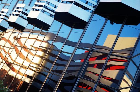 Wasserfälle und Amphitheater auf dem Watercourt, wo im Sommer Openairkonzerte stattfinden. In den Grünanlagen zwischen den Glas- und Betonriesen stehen Skulpturen. Das Wasser aus den Brunnen hat einen kühlenden Effekt. Hier wurde der Film "Batman Forever" gedreht.