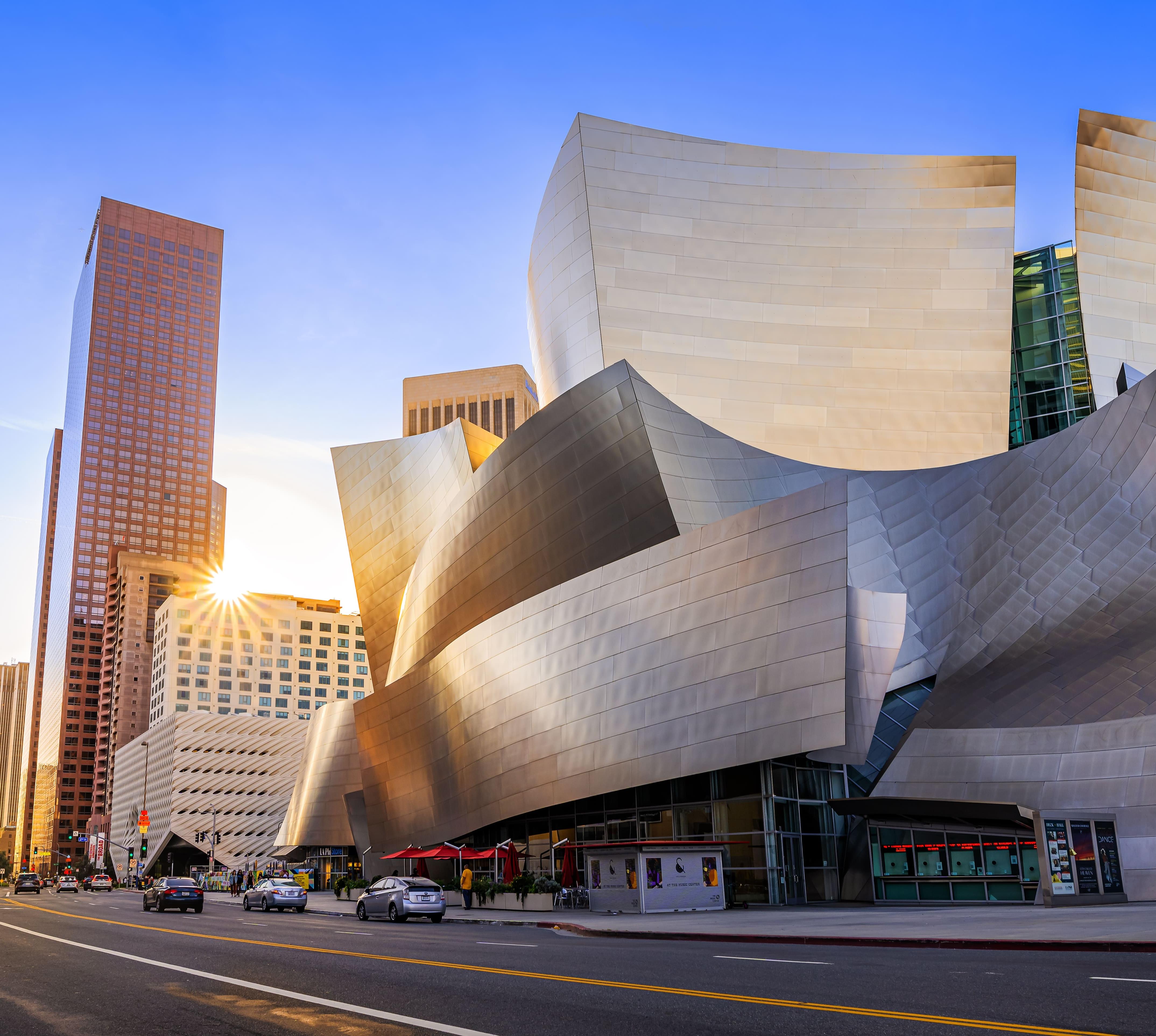 Ein 50-Mio.-$-Geschenk der verstorbenen Lillian Disney (Walt Disneys Ehefrau) gab Namen und Anstoß für die $ 274 Mio. teure, 2003 eingeweihte Konzerthalle der Los Angeles Philharmonic. Um die Akustik zu optimieren, ließ Architekt Frank O. Gehry keine Wand gerade bauen. Die Fassade aus glänzendem Edelstahl reflektiert Himmel und Wetter. Beim Spaziergang durch den Blue Ribbon Garden, den üppig bepflanzten Dachgarten, tauchst du in die einzigartige Architektur der Konzerthalle ein.